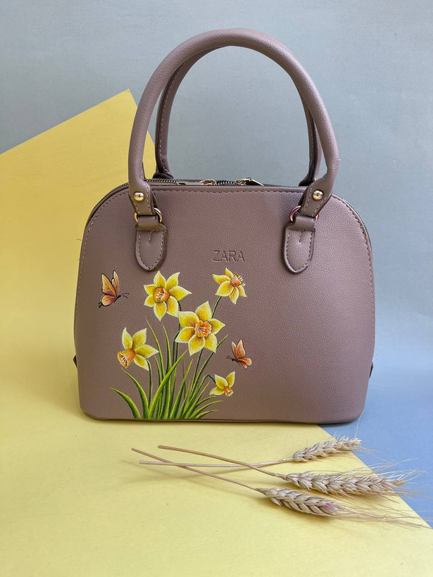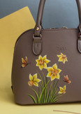 کیف دستی چرم مصنوعی هنر دست با طرح گل نرگس