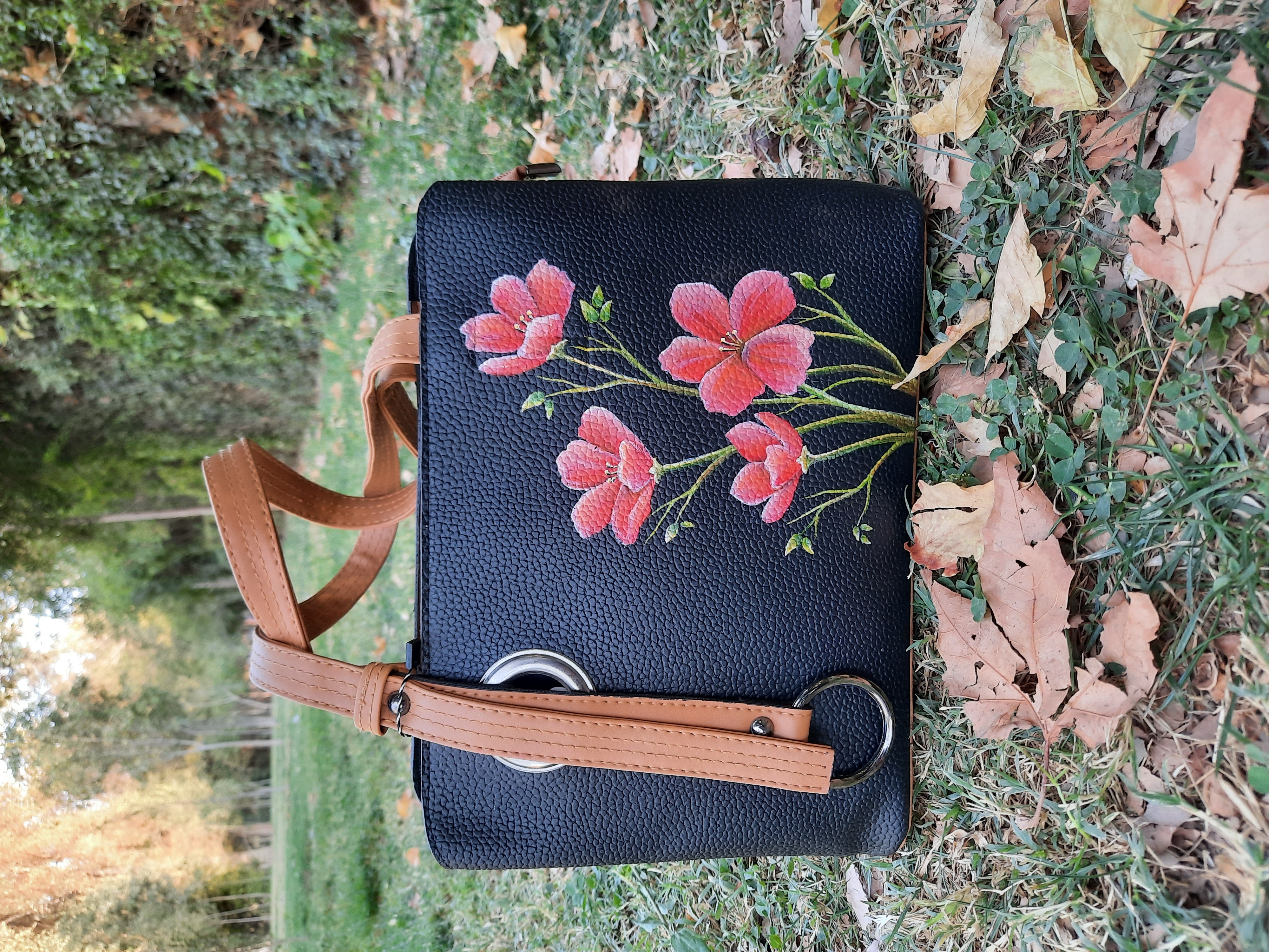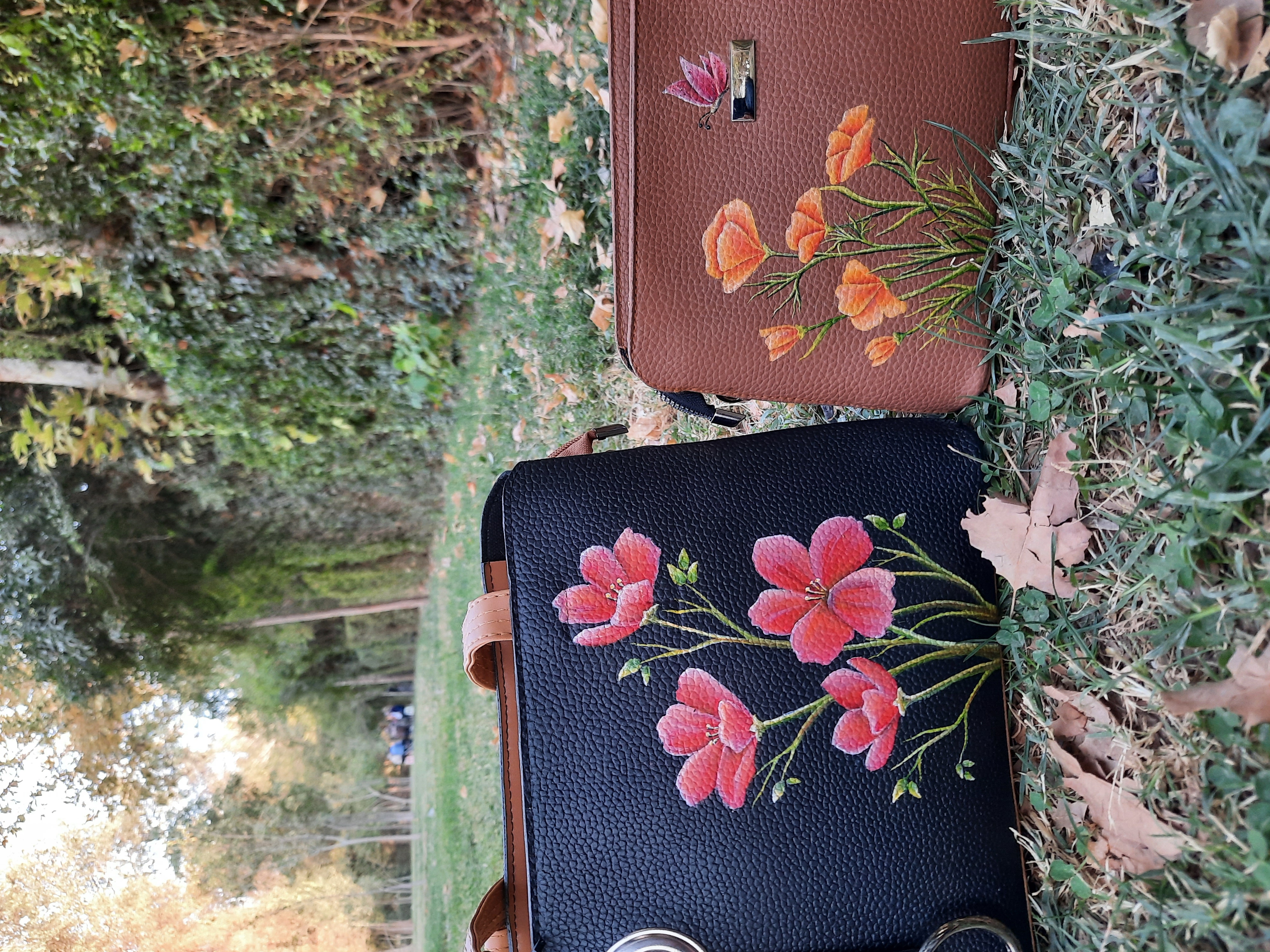 کیف دستی چرم هنر دست ضد آب با طرح نارگل